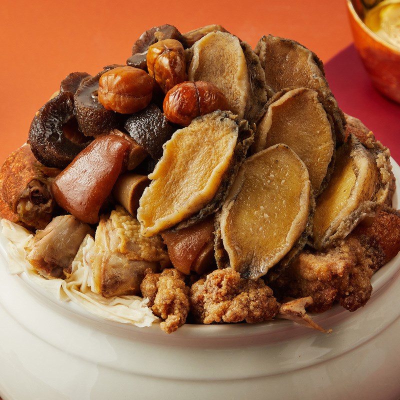佛跳牆身為年菜中的主角,胡同燒肉與台南的米其林指南餐廳「錦霞樓」聯名,特別請主廚精心特製,挑選鮑魚、烏參、干貝、花菇….等上等食材加入高湯燉煮,金黃湯汁融合所有食材的風味,今年過年就與家人一同品嚐超過一甲子的傳統經典。
