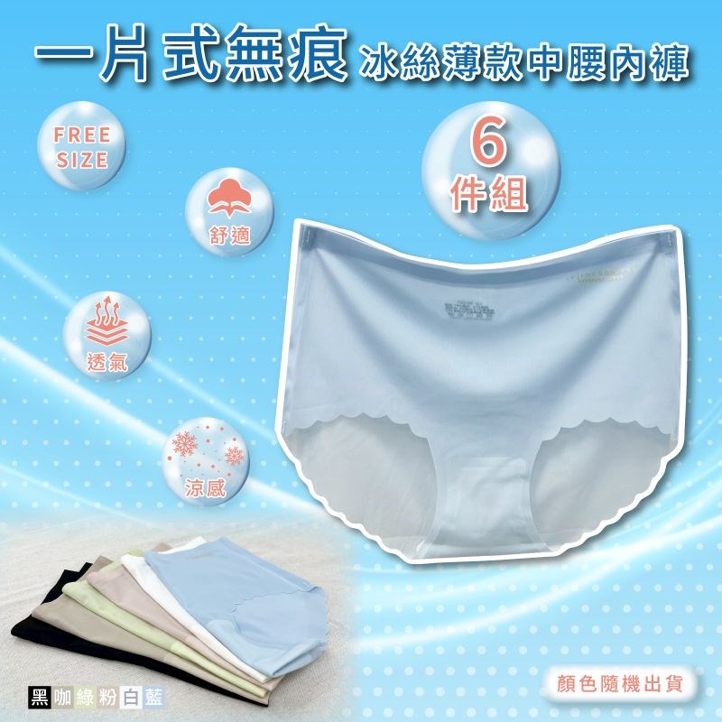【卡妮兒】一片式無痕冰絲薄款中腰內褲 FREE(混色6件組)