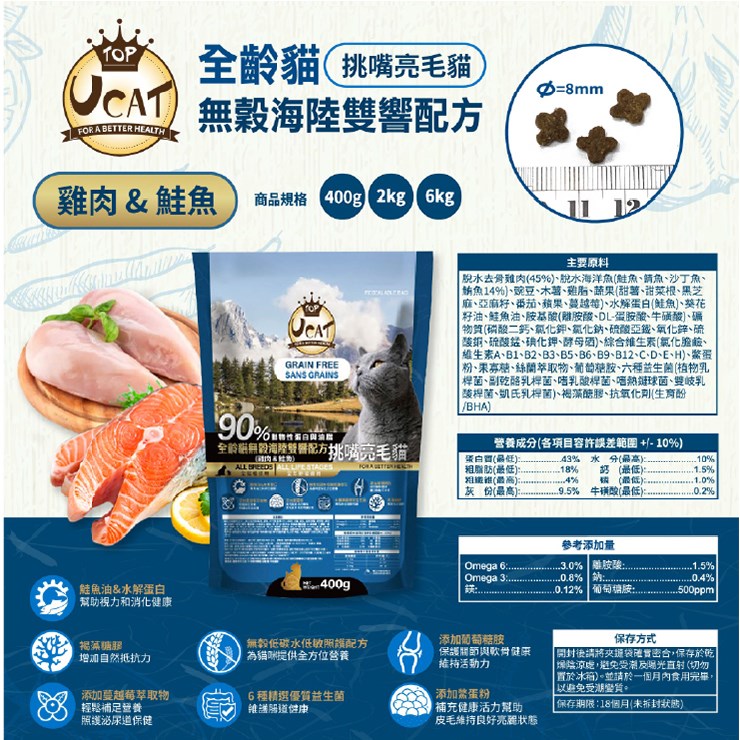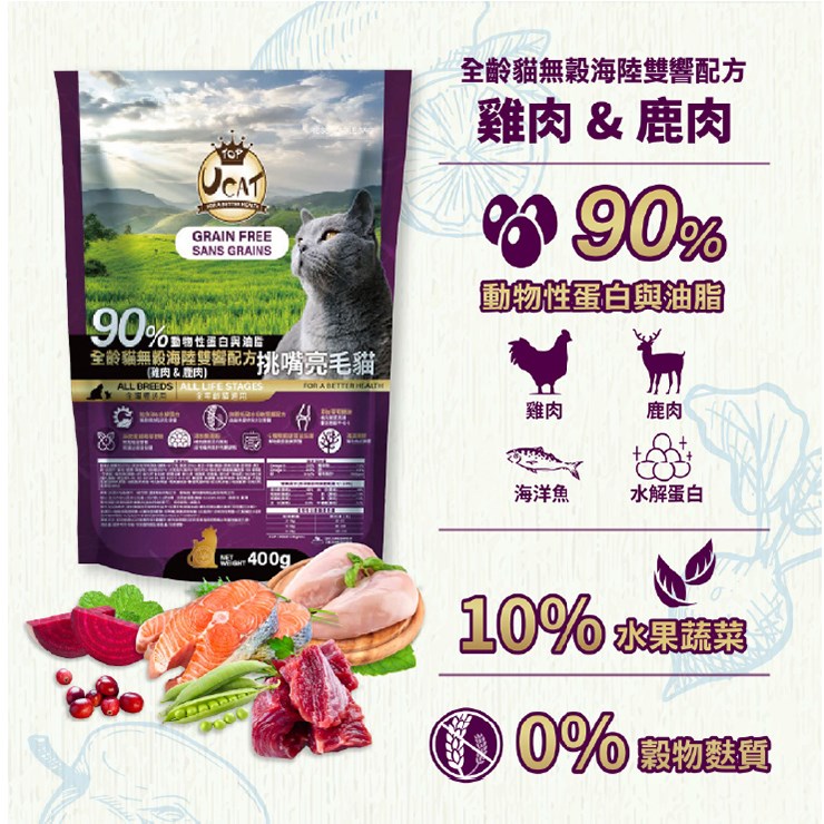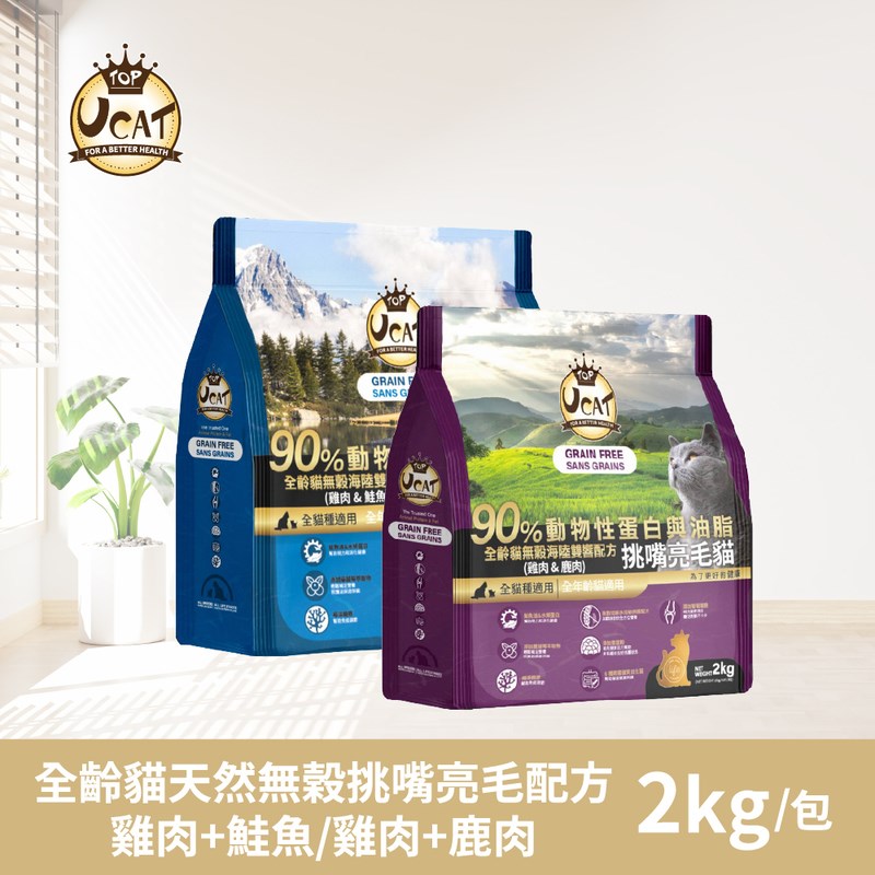 【UCAT】全齡貓無穀海陸雙響配方 挑嘴亮毛貓(雞肉鮭魚)/(雞肉鹿肉)2kg/包