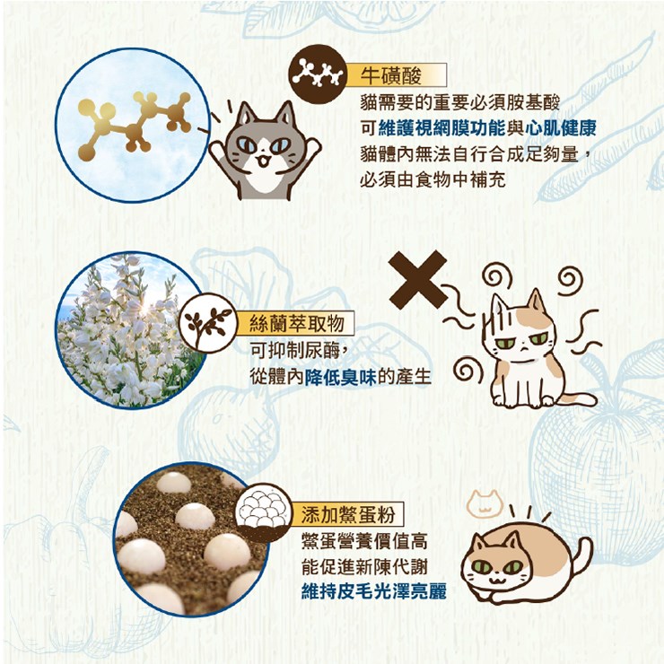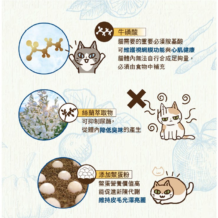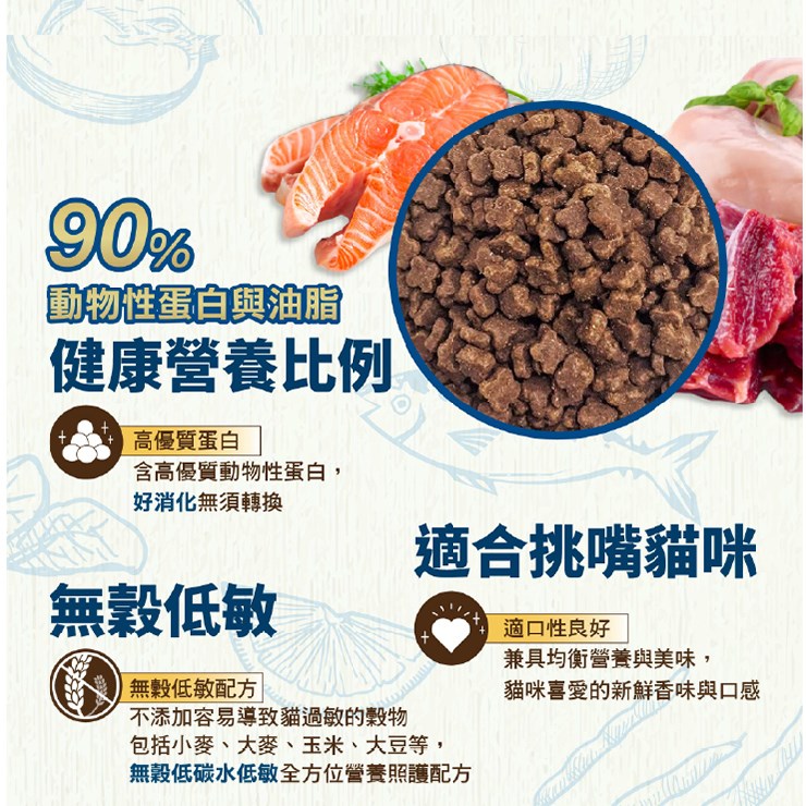 適用寵物種類: 本品為全年齡貓咪適用飼糧(10個月以下幼貓除外)。