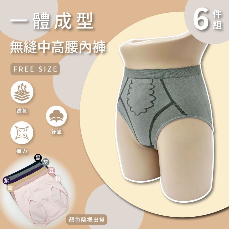 【卡妮兒】一體成型無縫中高腰內褲 FREE(混色6件組)