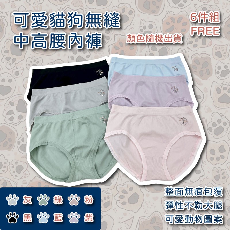【卡妮兒】可愛貓狗無縫中高腰內褲 FREE(混色6件組)