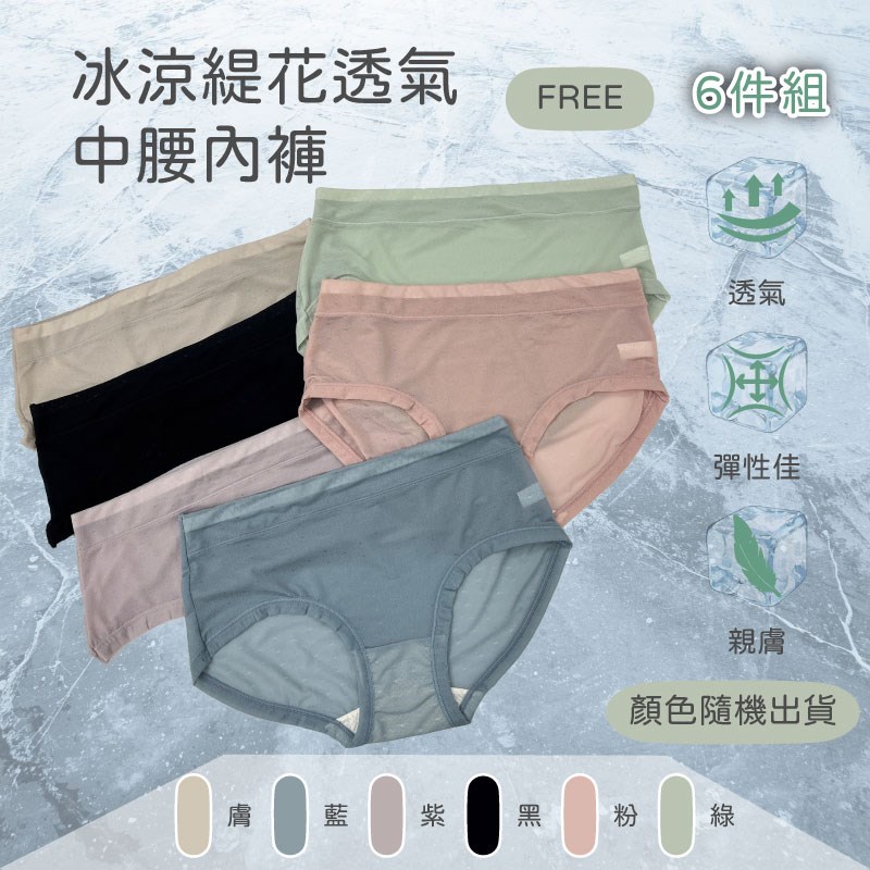 【卡妮兒】冰涼緹花透氣中腰內褲 FREE(混色6件組)