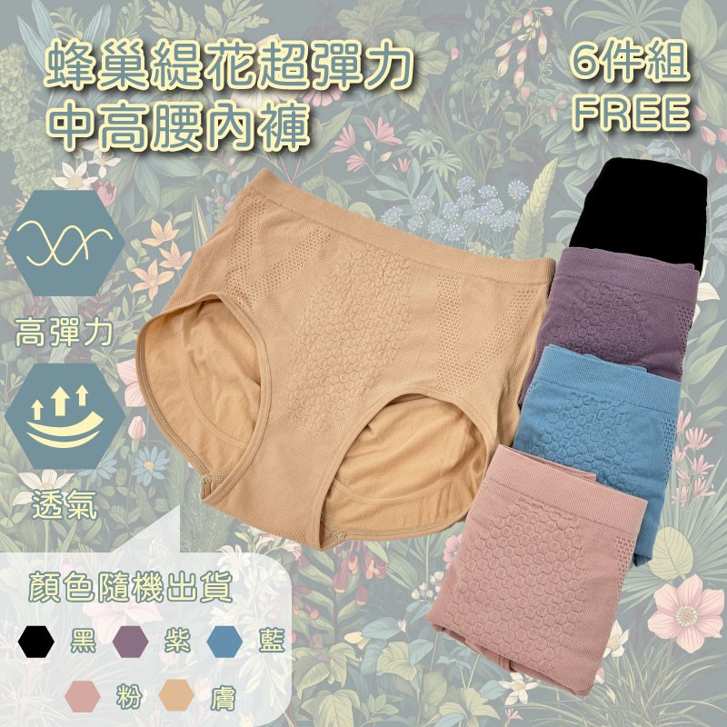 【卡妮兒】蜂巢緹花超彈力中高腰內褲 FREE(混色6件組)