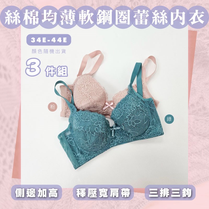【卡妮兒】絲棉均薄軟鋼圈蕾絲大罩內衣 32-44 E罩杯(混色3件組)