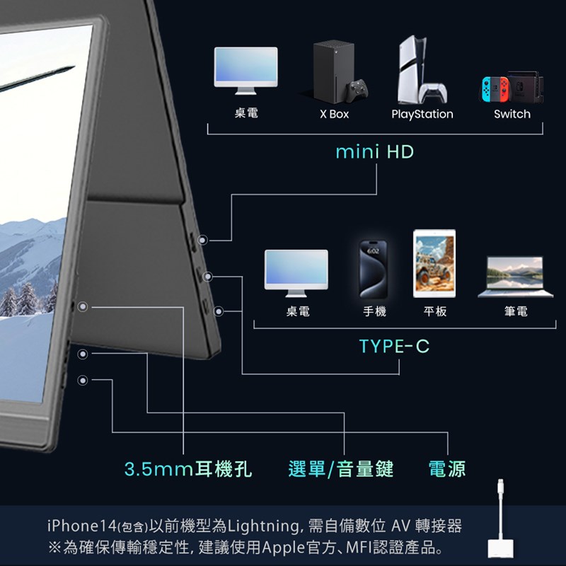 *電腦或手機需能支援 USB-Type C(USB 3.1 映像入力・給電用),請務必確認