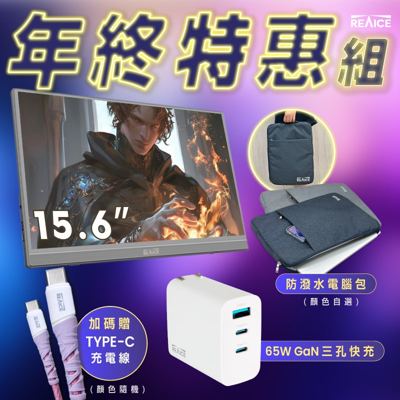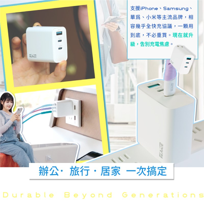 【REAICE】65W GaN氮化鎵三孔PD快充充電器/筆電/iPhone16快充/TYPE-C快充