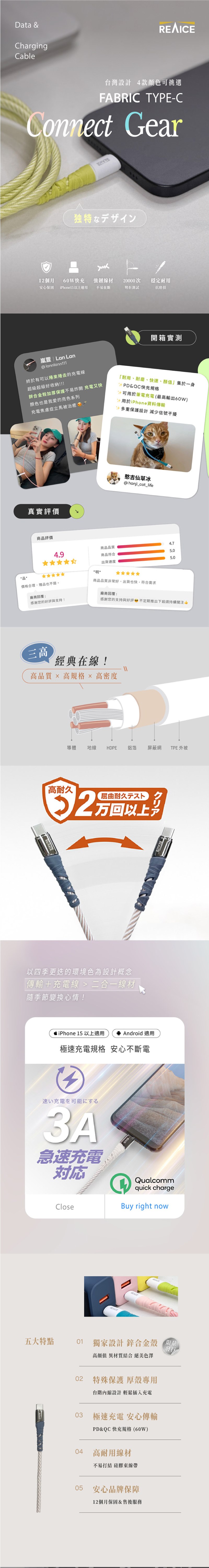 贈品:Type-C to Type-C 1.2M 耐磨編織充電線 60W快充/傳輸線
