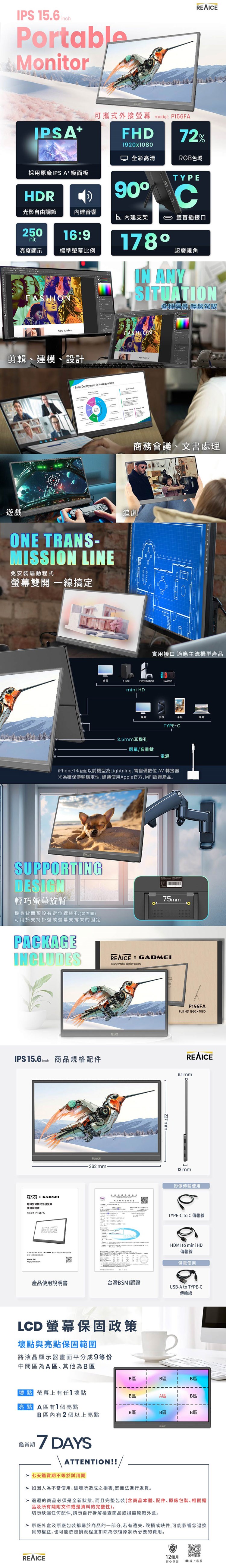 配件 :Type-C to Type-C線*1、USB-A to Type-C線*1、HDMI to mini HD線*1、使用說明書(保證書)*1