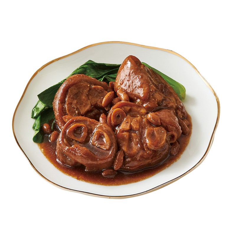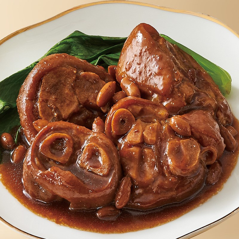 主要成分:豬腳(台灣 加拿大 荷蘭)、水、花生、醬油、冰糖、米酒、醬油膏、水、非基因改造脫脂黃豆片、胺基酸液、釀造生醬油、水、非基因改造脫脂黃豆片、小麥、食鹽 轉化液糖、蔗糖、水、黏稠劑、乙醯化己二酸二澱粉、糯米、防腐劑、己二烯酸鉀、甜味劑、甘草酸鈉、酵母抽出物、食鹽、調味劑 (DL-蘋果酸、糖、鹽、 L-麩酸鈉、調味劑 (L-麩酸鈉、5'-次黃嘌呤核苷磷酸二鈉.5'-鳥嘌呤核苷磷酸二鈉、焦糖色素、白胡椒粉、八角粉、花椒粉、肉桂粉。
