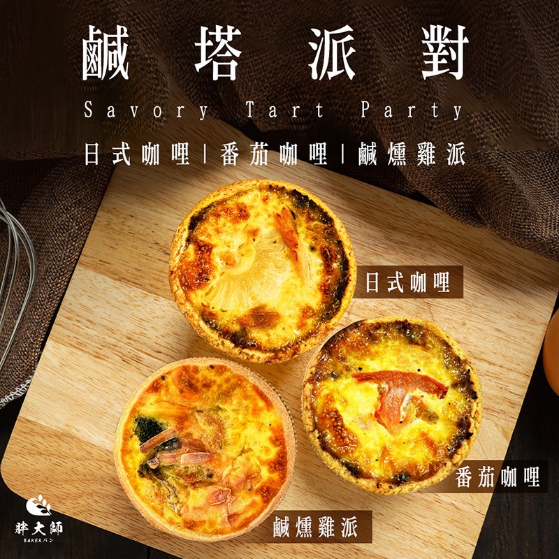 【胖大師】鹹塔派對x3入(80-125g/入)(日式咖哩、番茄咖哩、鹹燻雞派)