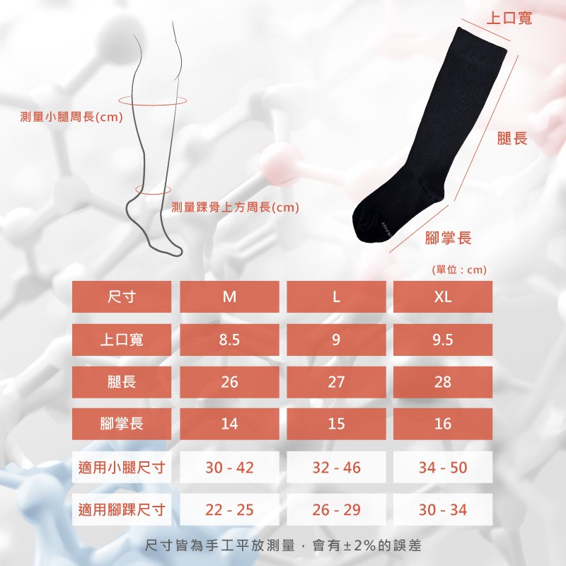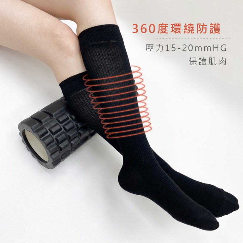 • 360°環繞包覆(15–20mmHg):均衡包覆力道由下而上延伸,長時間穿著依然維持輕鬆舒適。