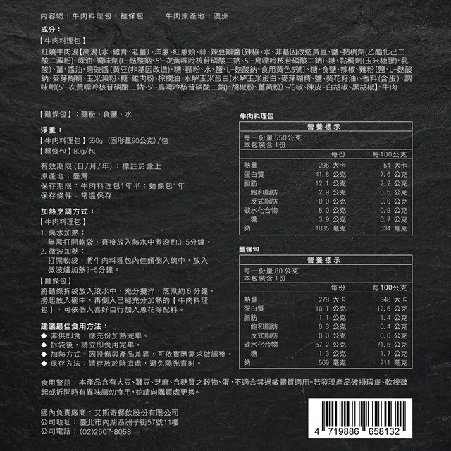 保存期限 :【牛肉料理包18個月 / 麵條包12個月】