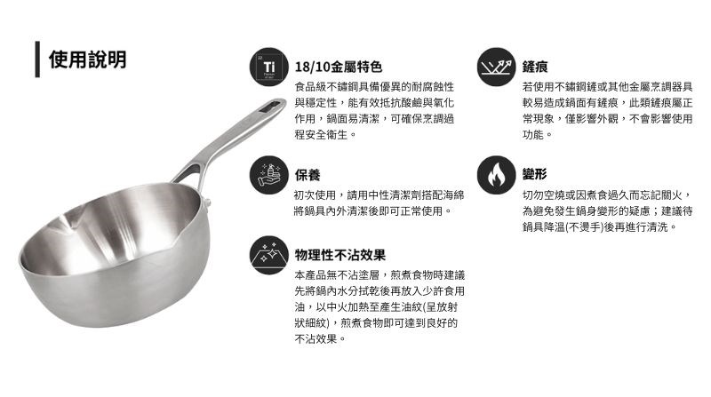 • 材質  :     鍋內( 18:10 )  ;鍋外( 18:0 )