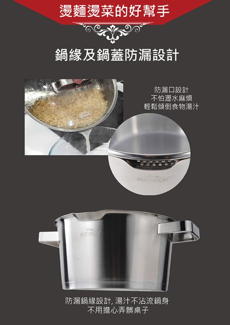 ★ 產品1 : 【ARMADA】鬱金香系列 18CM單柄湯鍋 (配不鏽鋼蓋)