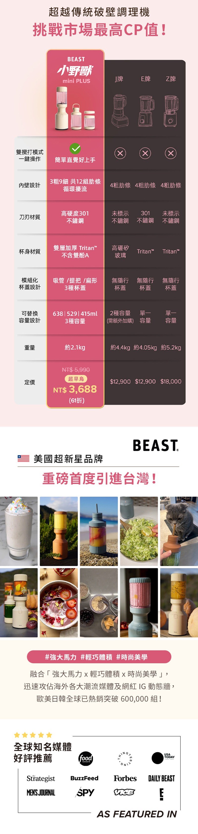 【美國Beast】 mini PLUS小野獸破壁機-三色
