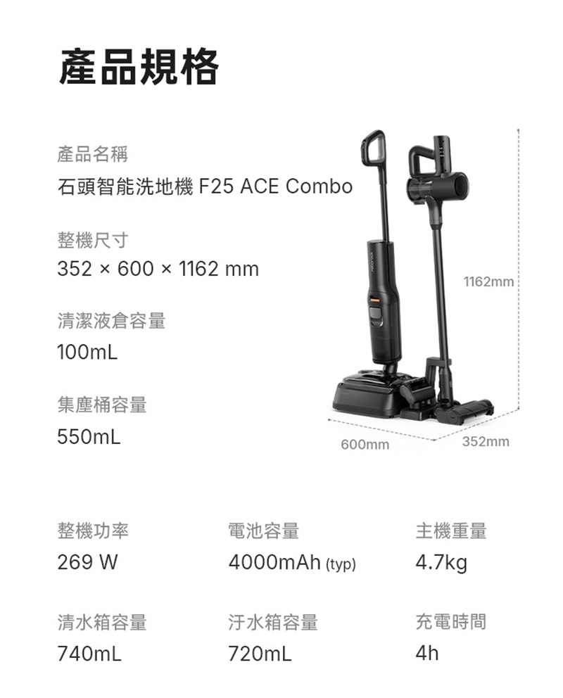 【石頭科技】F25 ACE Combo 五合一AI全能吸塵洗地機(WD5M6A)