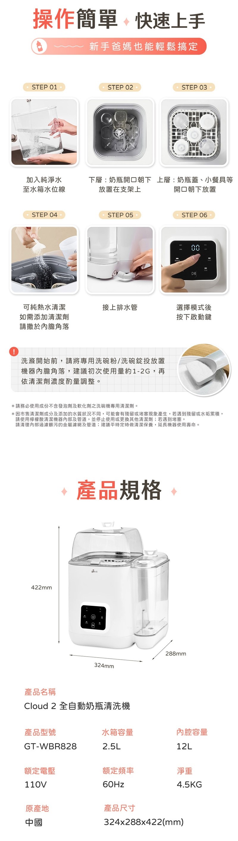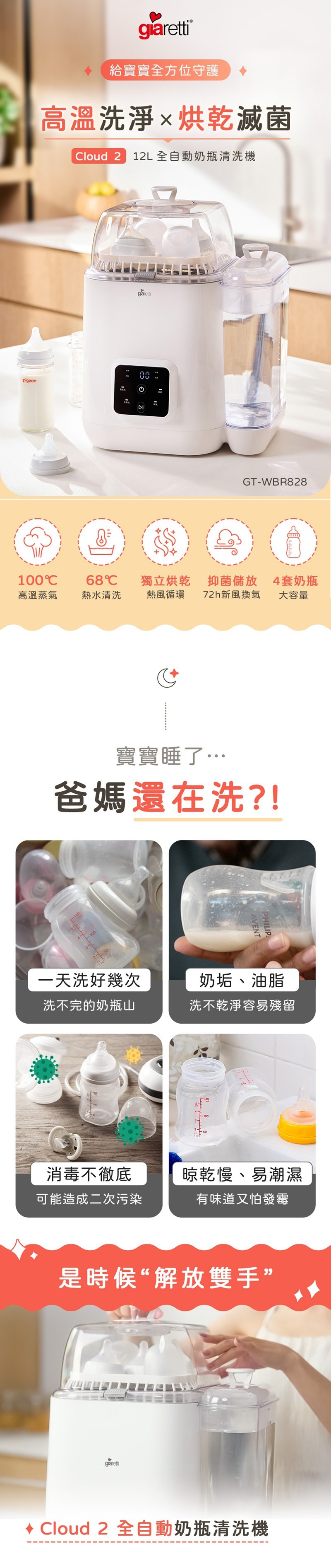 【義大利Giaretti珈樂堤】(二代)CLOUD-2 全自動奶瓶清洗機(GT-WBR828)