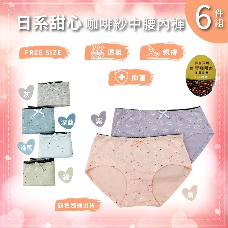【卡妮兒】日系甜心咖啡紗中腰內褲 FREE(混色6件組)