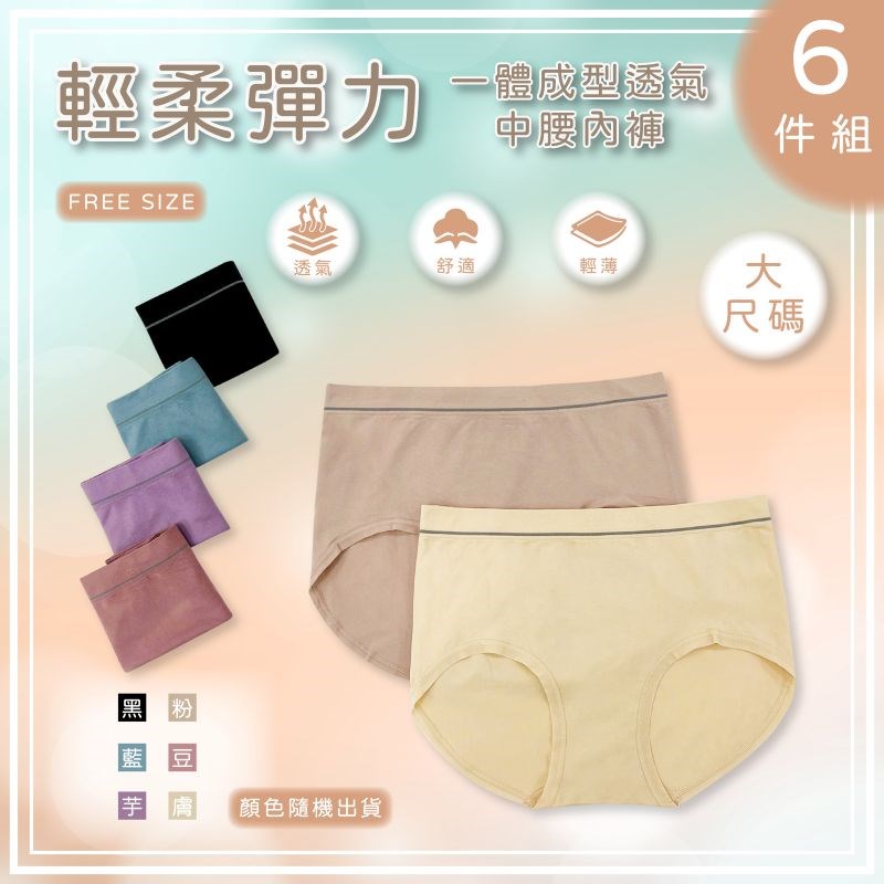 【卡妮兒】輕柔彈力透氣中腰大尺碼內褲 FREE(混色6件組)