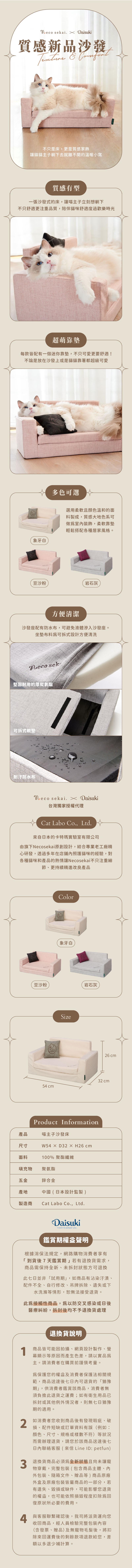 【Necosekai】喵主子沙發床 (豆沙粉/象牙白/岩石灰)
