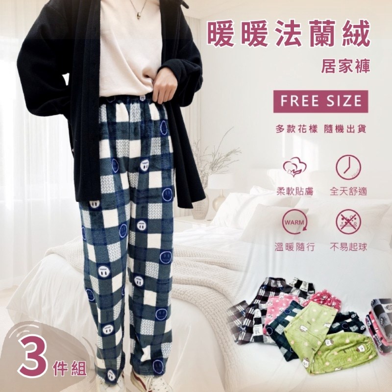 【卡妮兒】暖暖法蘭絨居家褲 FREE(隨機色3件組)