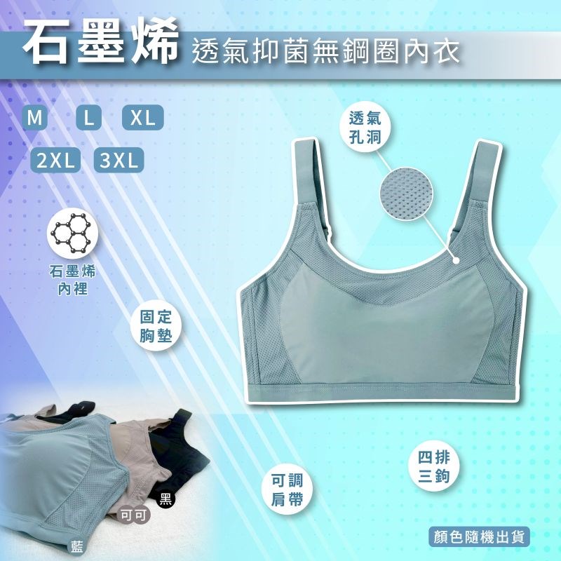 【卡妮兒】石墨烯透氣抑菌無鋼圈內衣 M / L / XL / 2XL / 3XL(混色3件組)