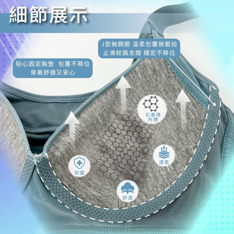 石墨烯內裡具抑菌透氣效果,吸濕導汗、不易悶熱。