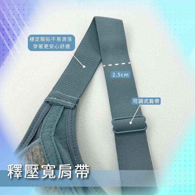 寬版肩帶具釋壓效果,止滑紋路加強穩定不滑落