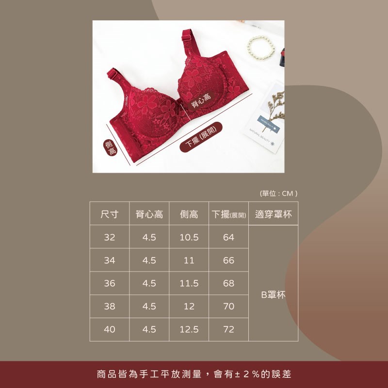 內衣尺寸:32 / 34 / 36 / 38 / 40 (B罩杯)