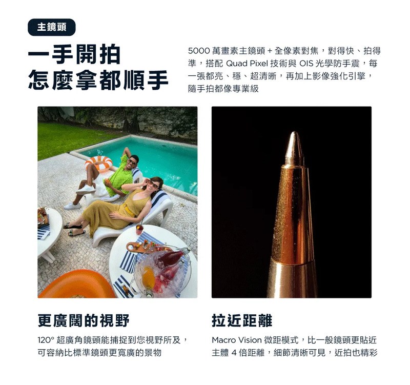 ◎ 後置 5,000 畫主鏡頭 + 1,300 萬超廣角微距鏡頭