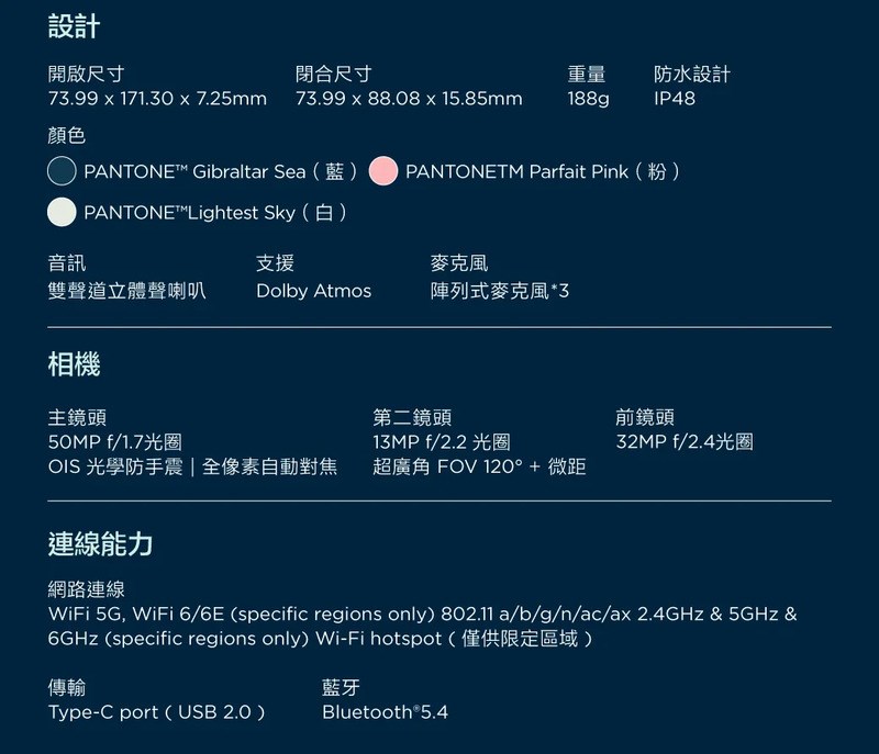◎ 5G 上網、eSIM、Wi-Fi 6E、藍牙 5.4、NFC