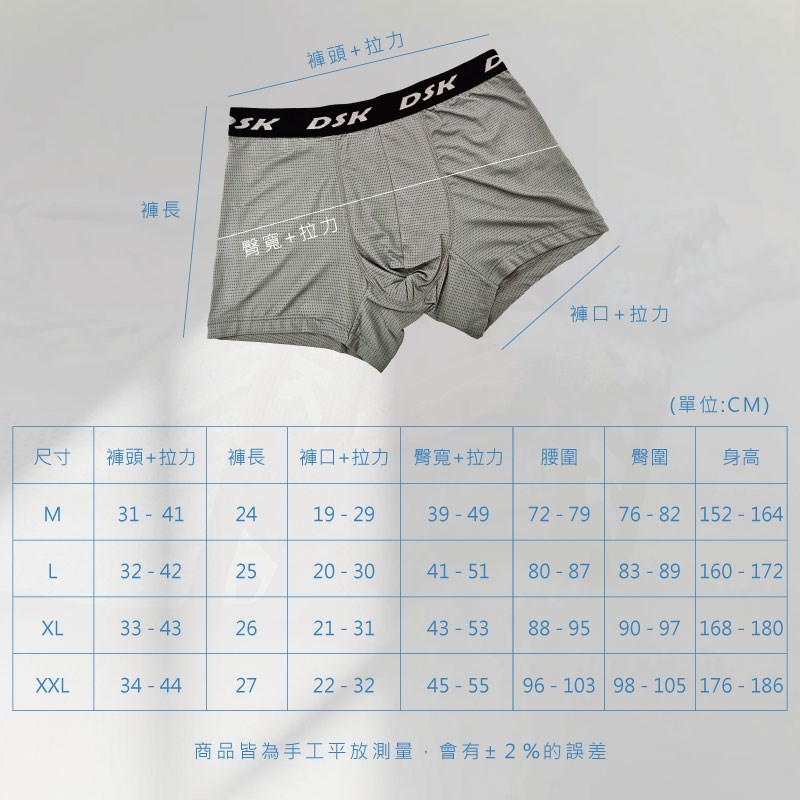 ●XXL 腰圍96-103cm∣臀圍98-105cm∣身高176~186cm
