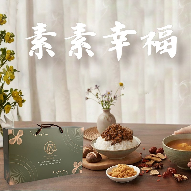 內含:菇嘰菇嘰素拌醬、當歸暖心湯、海苔素肉鬆