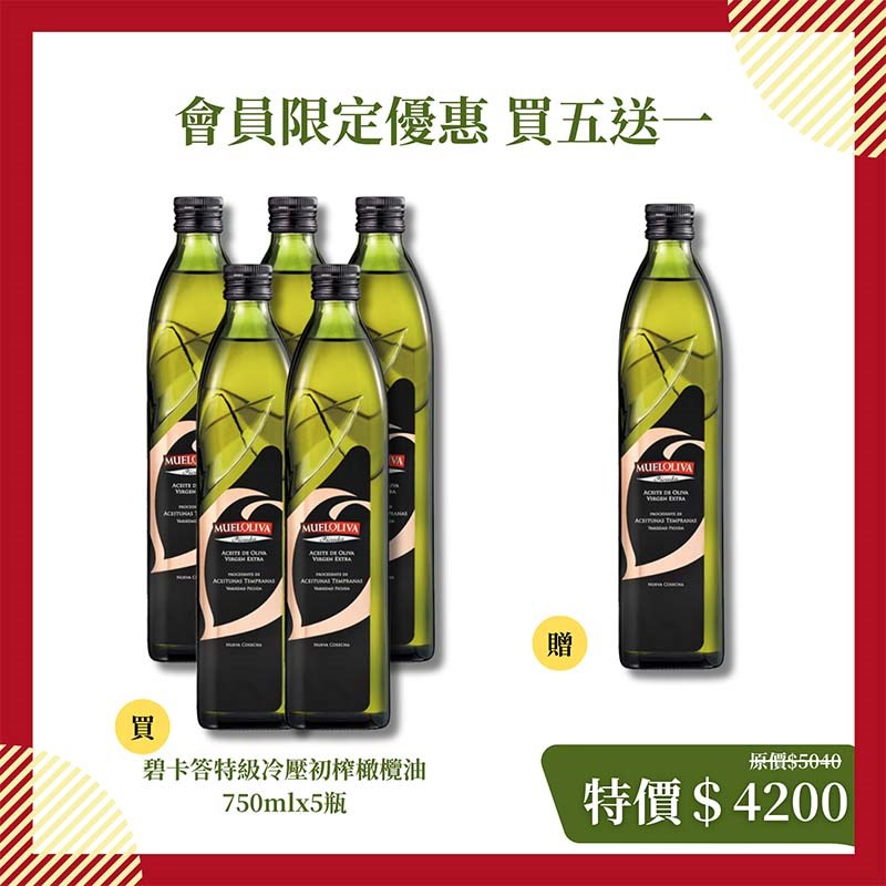 ■ 品名:美洛莉碧卡答特級冷壓初榨橄欖油750ml (買5瓶送1瓶)
