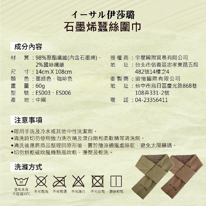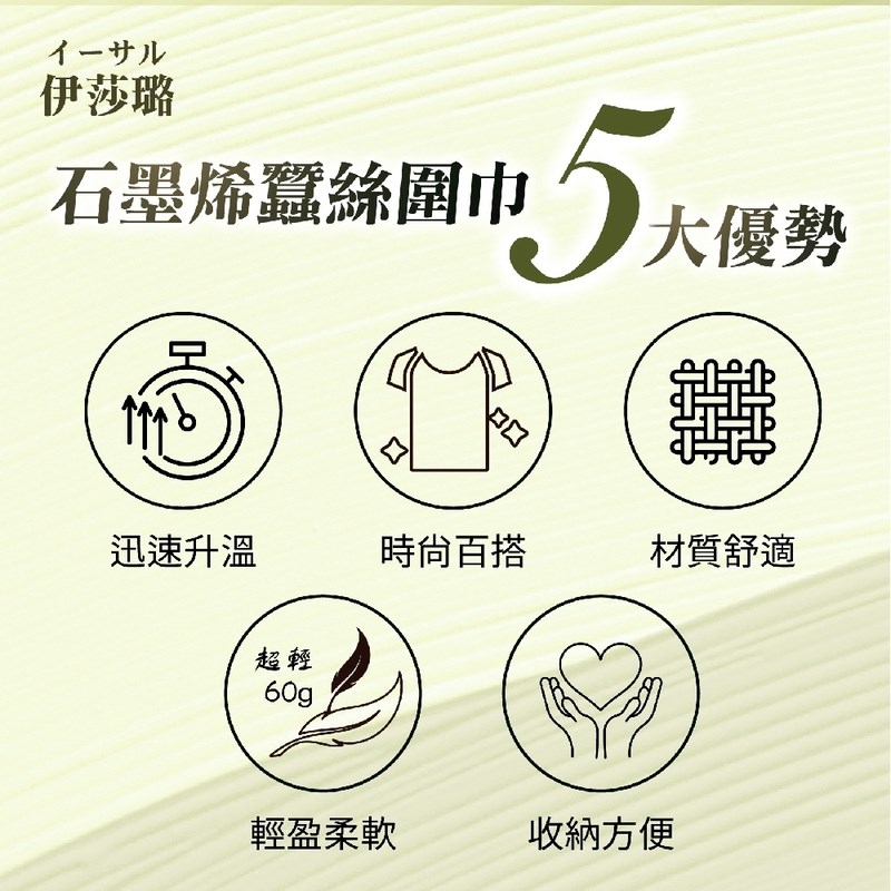 【伊莎璐イーサル】石墨烯蠶絲圍巾,以石墨烯纖維的恆溫特性結合天然蠶絲的柔滑觸感,