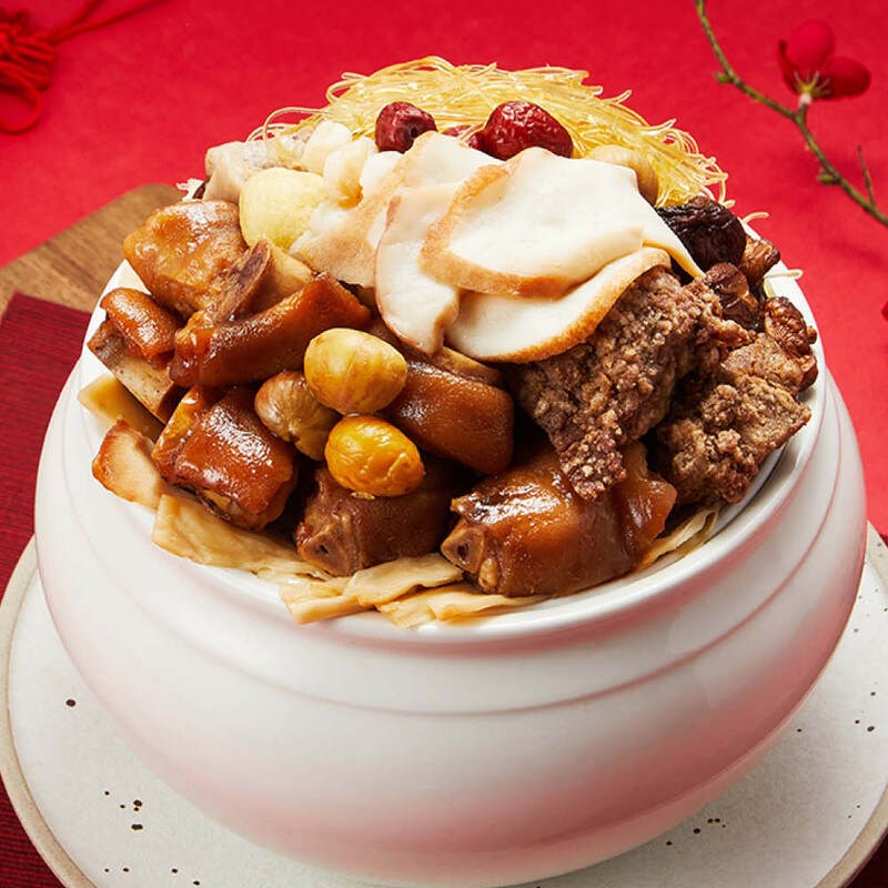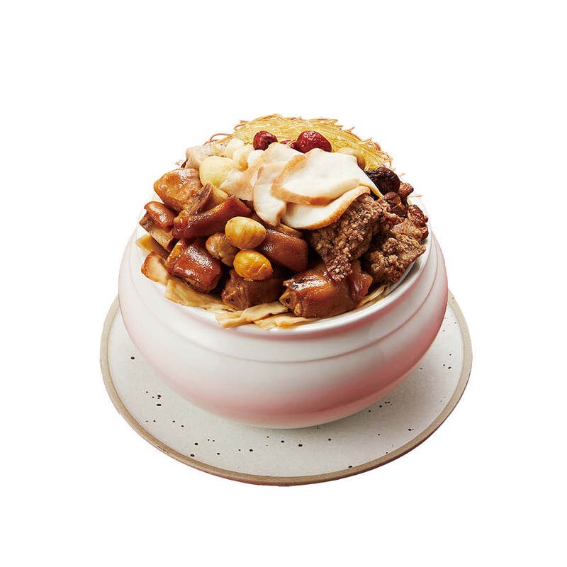 嚴選豬腳、豬肚、排骨、蹄筋、珠貝、芋頭、栗子與香菇等多樣澎湃食材,搭配紅棗與五香慢火燉煮,湯頭濃郁甘醇、層次豐富。
