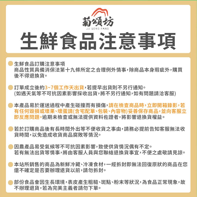 ►配送過程可能造成些微果損,小枝傷、磨擦痕跡、小瘀傷屬正常範圍,可接受者再下單