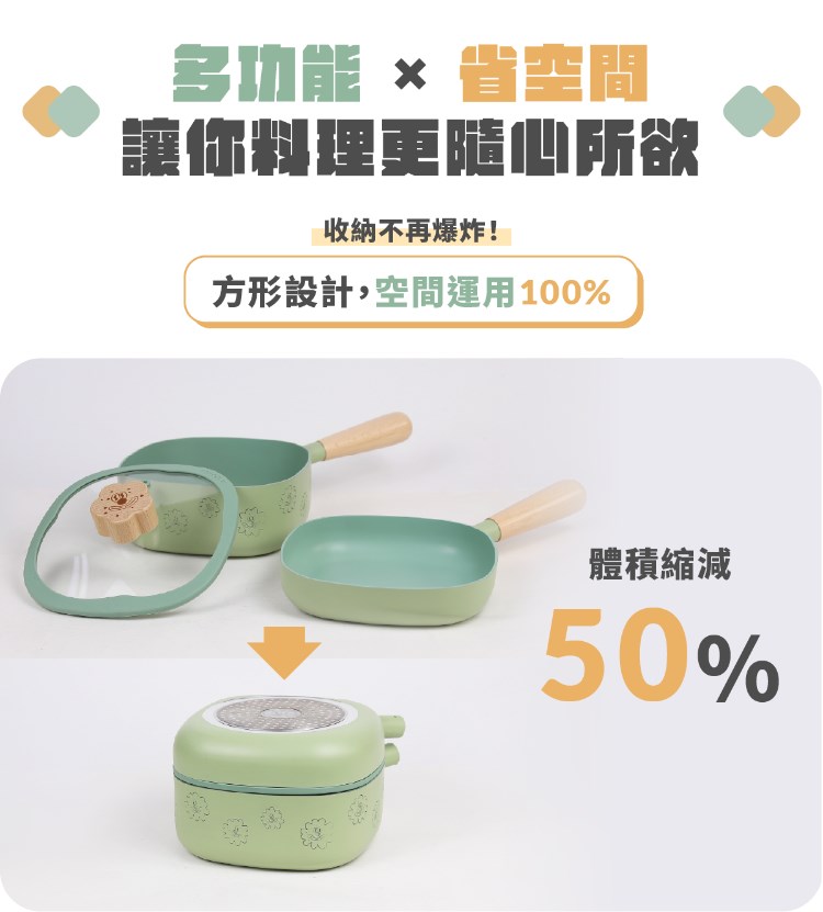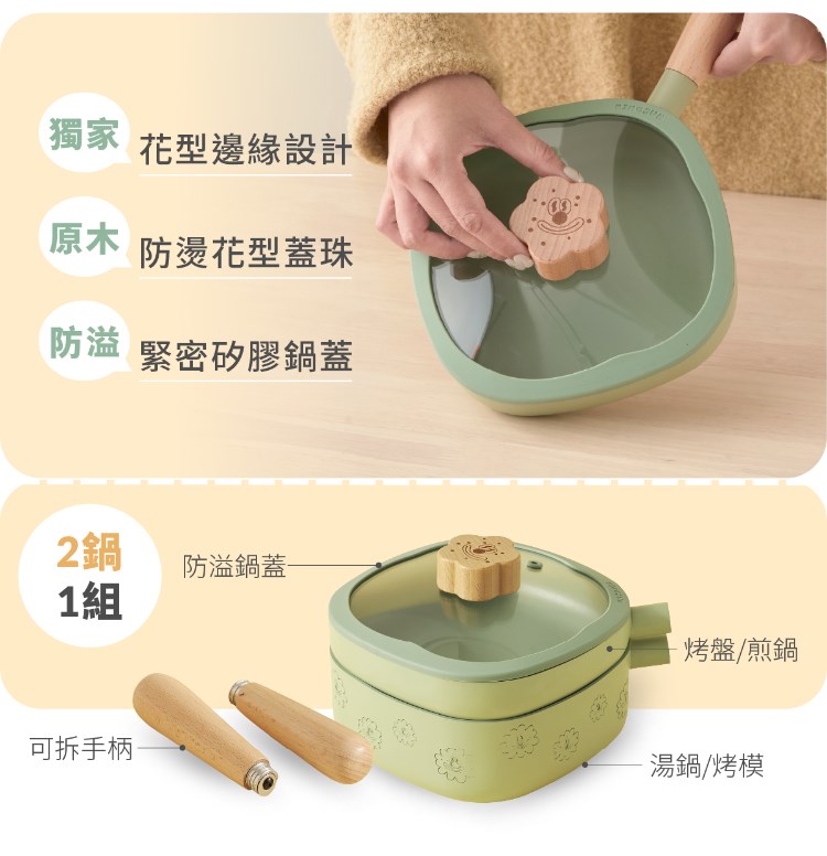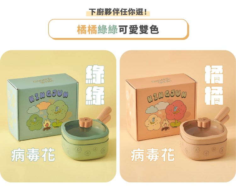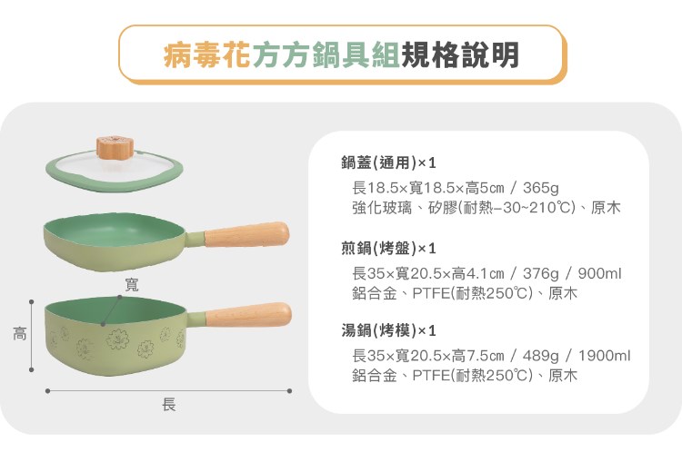 【LMG】KINGJUN聯名-病毒花方方鍋組(湯鍋18cm+烤盤18cm+鍋蓋x1+可拆手柄x2)