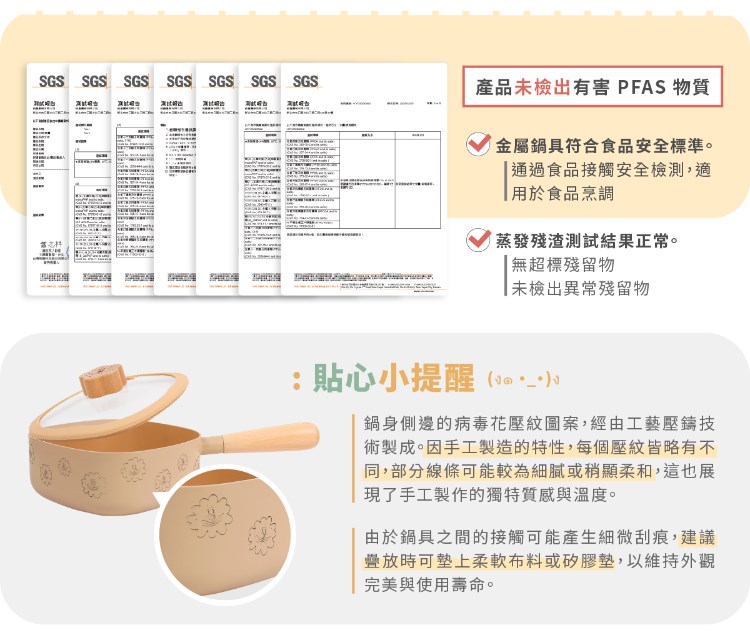 採用無毒塗層,不含 PFAS / PFOA / PFOS。