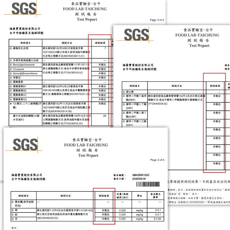 福壽油品,為您的食安把關,讓您食在安心,福壽實業在台灣百年前就以榨油起家,本著踏實真誠的態度,落實對消費者「食在安心」的承諾。 專業研發團隊,開發多種健康美味的食品,每批產品除定時交付內部品管單位控管外,亦送往第三方公正單位檢驗。福壽用心、品質安心。