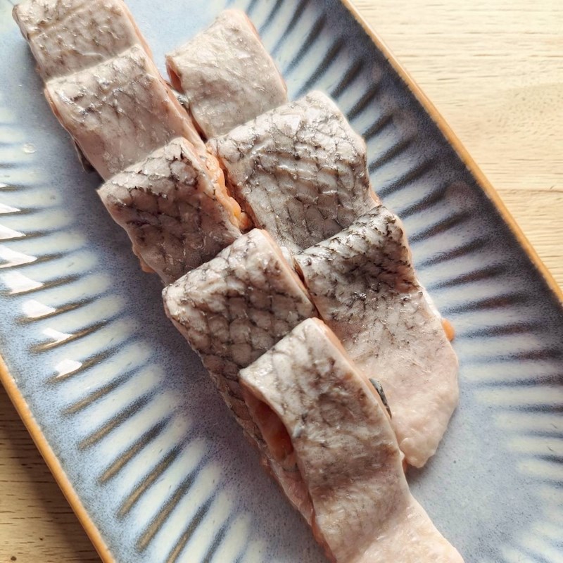 每一口都能感受到鮭魚皮特有的豐富脂香,加熱後化作令人上癮的「酥、香、脆」。