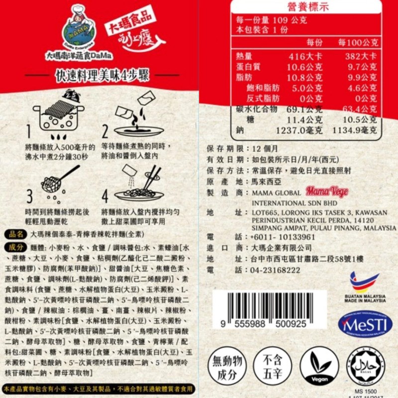 🌶️大瑪辣個泰泰青檸香辣乾拌麵12入(109g/包)