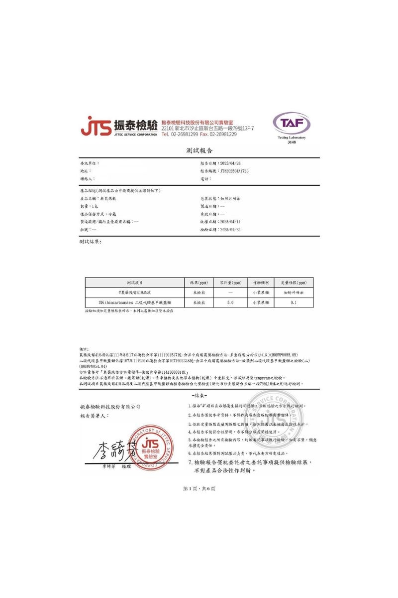 ●通過無農藥殘留檢測