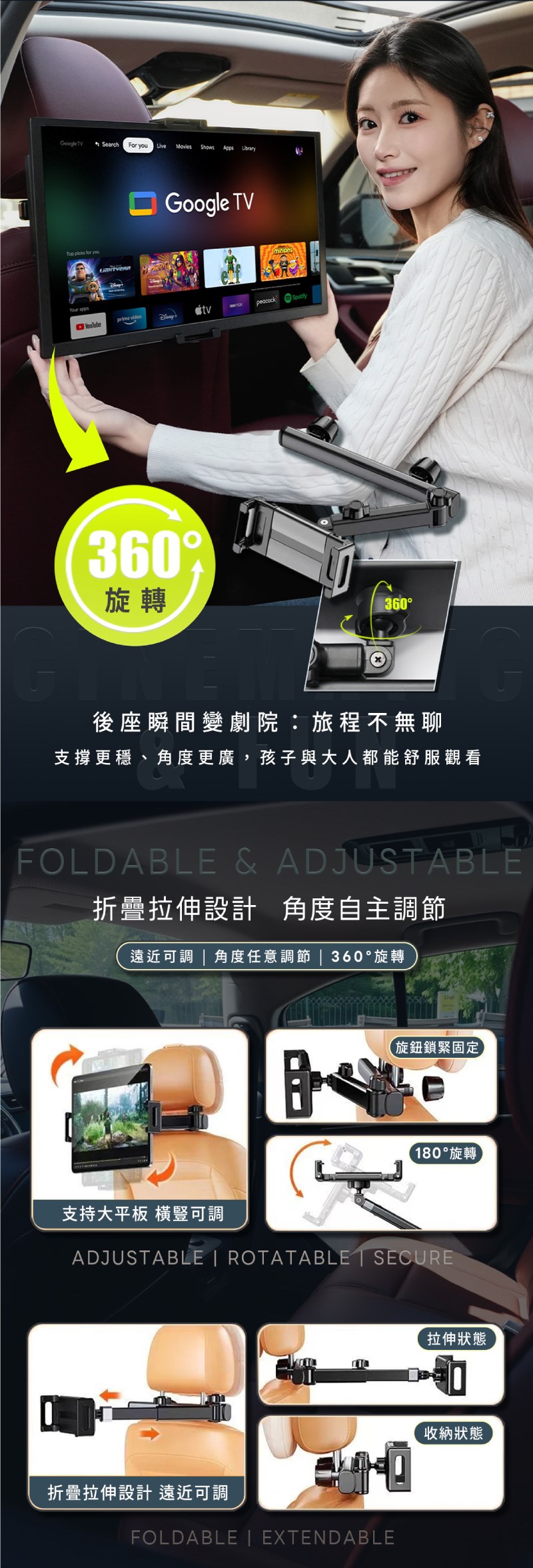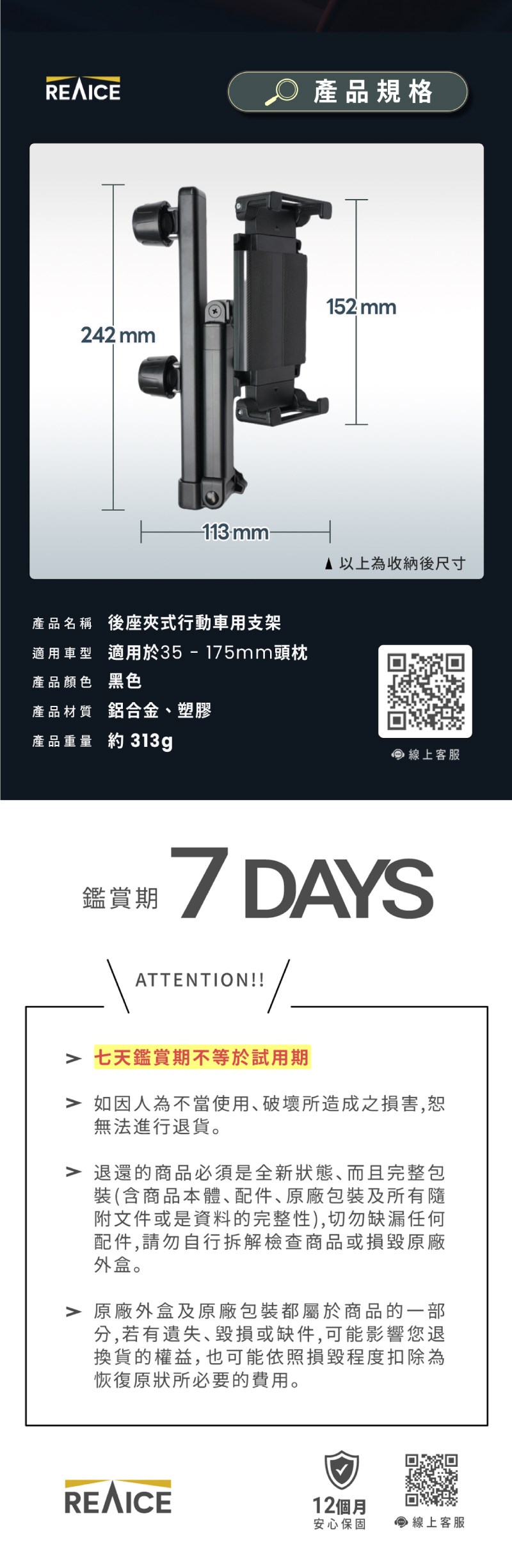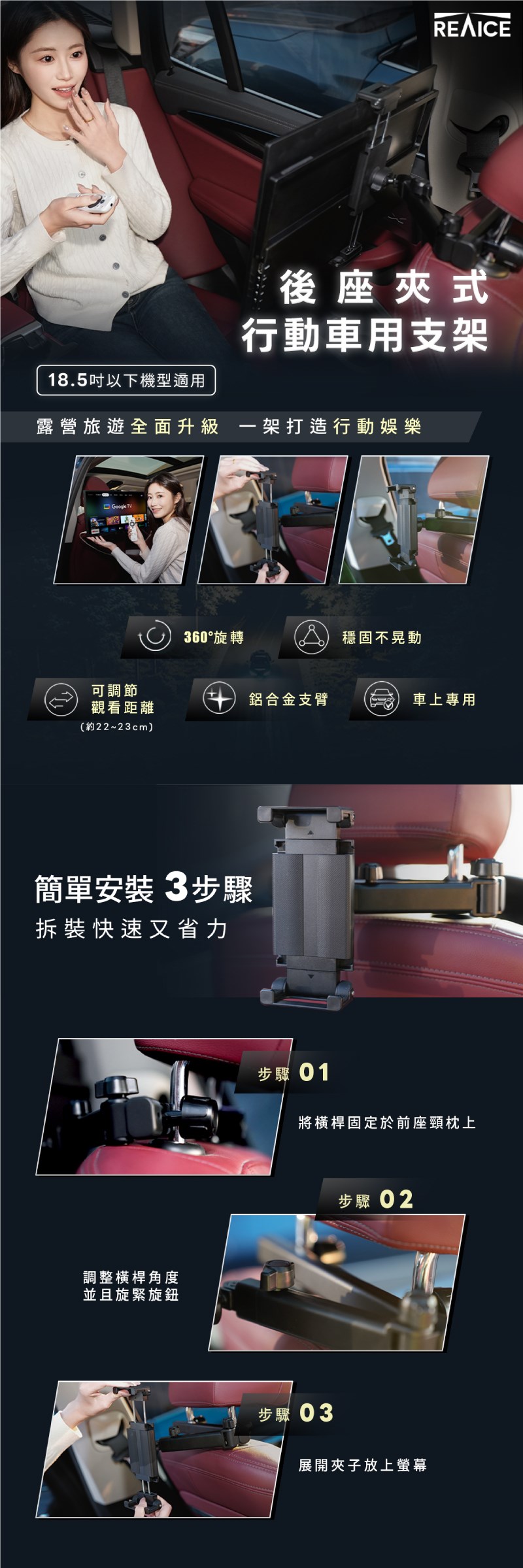 【REAICE】螢幕車用支架-鋁合金(車用支架 手機支架 平板支架 旅行支架)