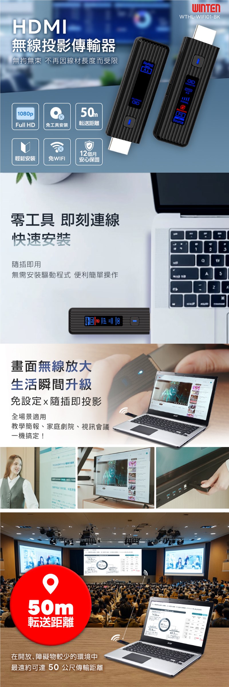 【REAICE】日本Winten HDMI 無線投影傳輸器 iphone手機投影/Netflix