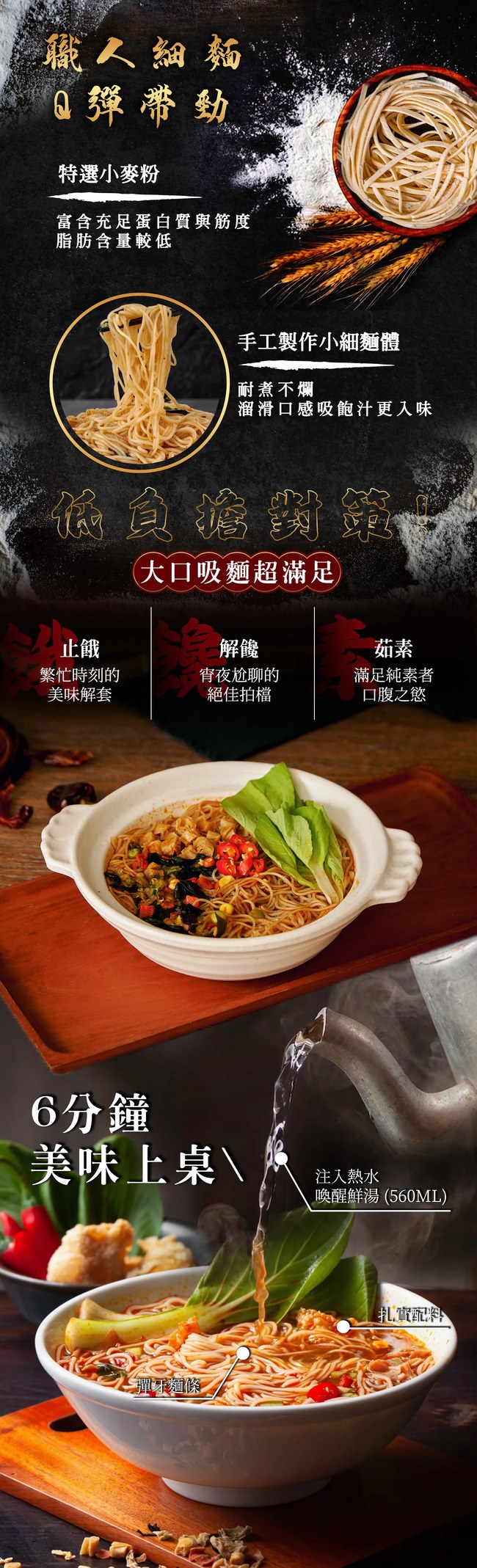 ☑嚴選小麥粉手工製作小細麵體、耐煮不爛