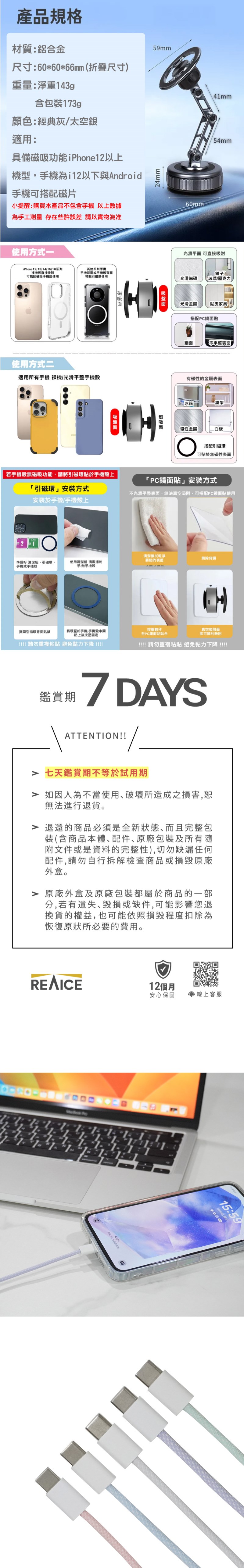 【REAICE】真空磁吸旋轉支架升級充電組 (內含1M TypeC充電線)