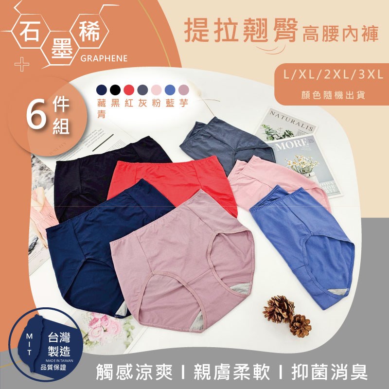 【卡妮兒】台灣製石墨烯提拉翹臀高腰內褲 L / XL / 2XL / 3XL(混色6件組)