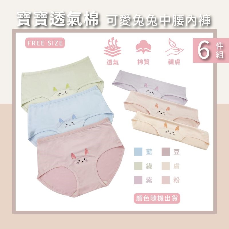 【卡妮兒】寶寶透氣棉可愛兔兔中腰內褲 FREE(混色6件組)